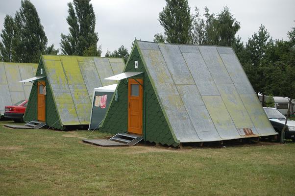 Součástí výbavy je i ložní prádlo. Chaty jsou umístěny v okrajové části areálu kempu, s nově zasazenými stromky. Dvě chatky jsou umístěny kolmo.